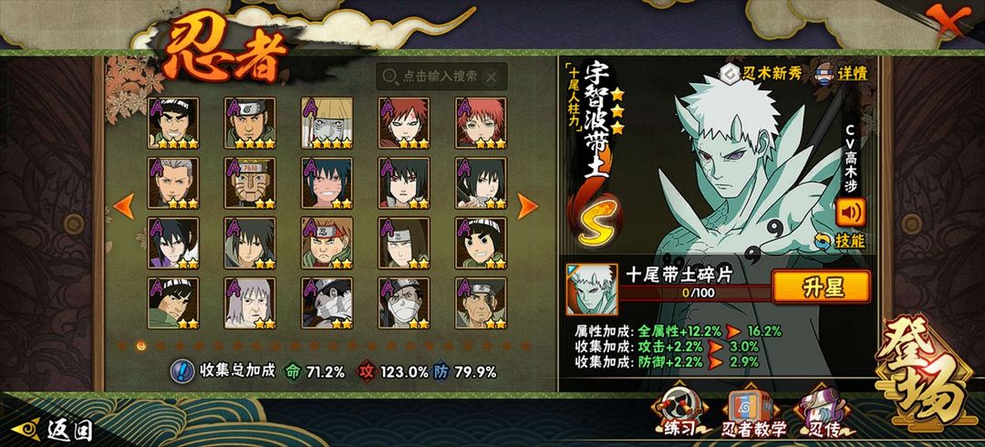 装备描述:十多个s忍最新的忍法帖忍着也快出了有漂泊佐助和其他忍者,还有暴怒第六尾和九喇嘛水门和秽土解斑等多个强力忍者