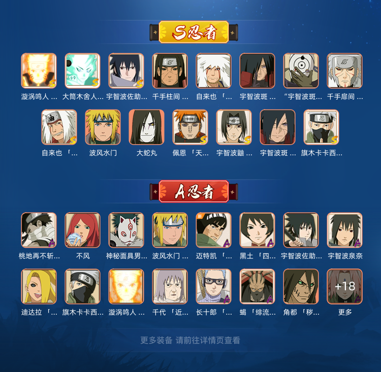 限制: 撤单率<80%才可租用此帐号装备描述:须佐卡卡西,秽土解,秽土斑,舍人,漂泊小南,面麻,忍战卡卡西,秽土扉间,白面具,秽土柱间,忍战,小李,青年长门