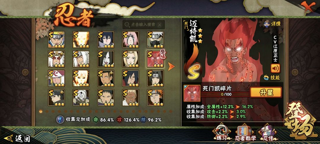 装备描述:20S✨39A✨186忍✨✨忍战带土✨死门凯✨创立柱间✨须佐止水✨新春鼬✨漂泊扉间✨