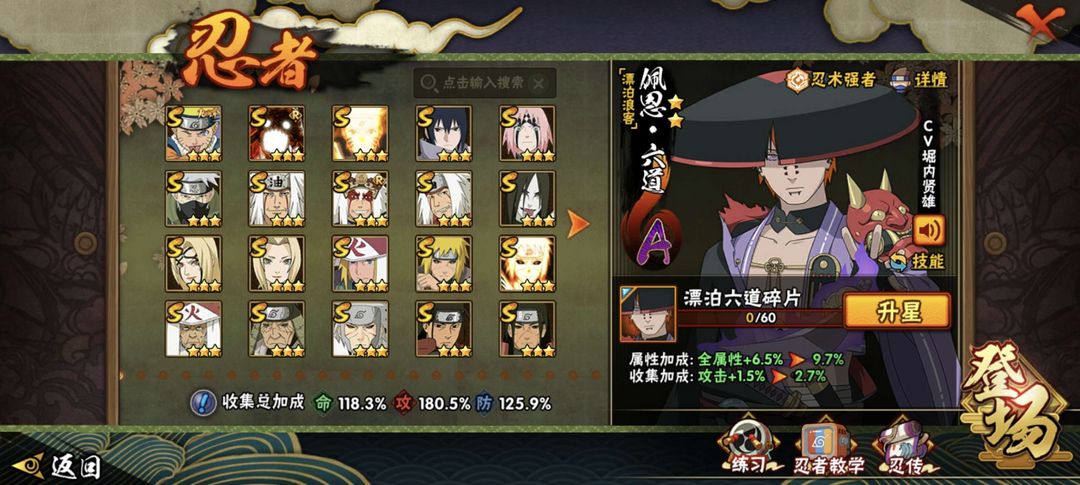 有熊猫蛞蝓,十级霸体,热门忍者漂泊佩恩,漂泊再不斩,暴怒六尾等30+S✨50+A✨