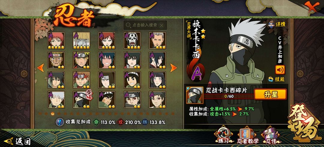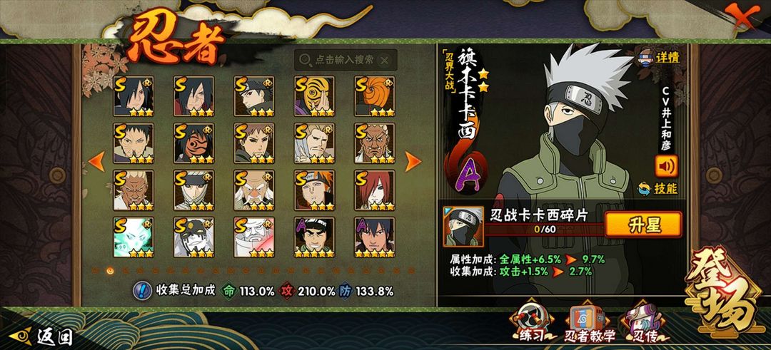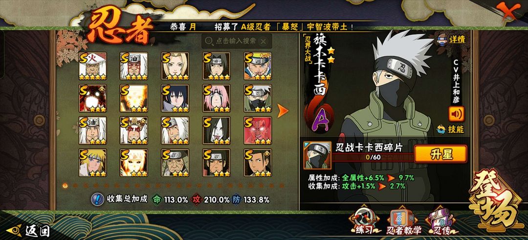 限制: 租号30次及以上 |装备描述:忍法帖除了半藏★金银角★超哥都有可以排位