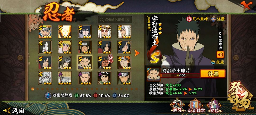 龙兜 永恒佐助 九喇叭鸣人 忍战带土 红夜面具男 三忍自来也 秽土柱间 秽土班 创立班 秽土解斑