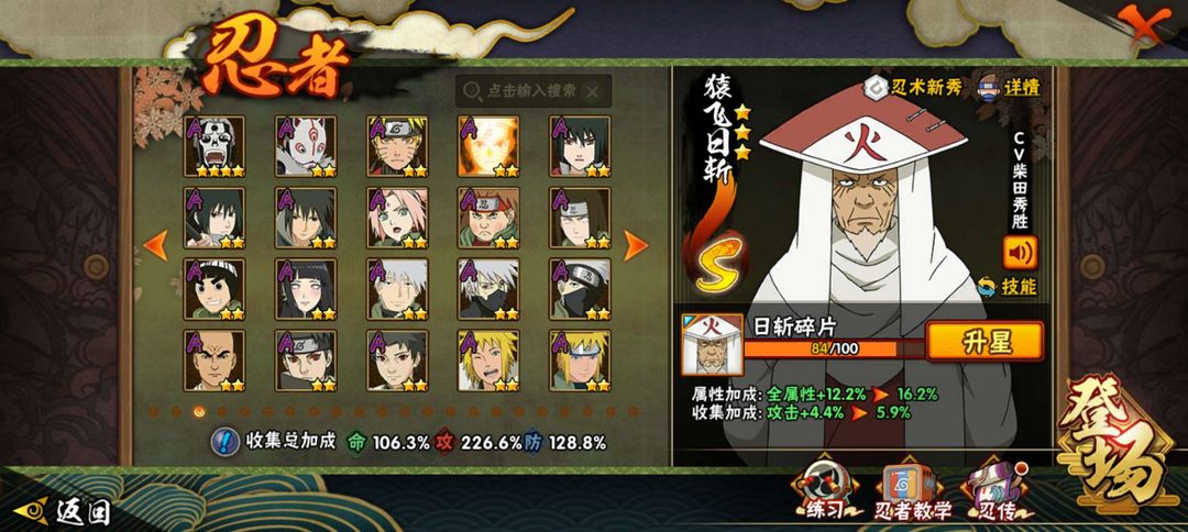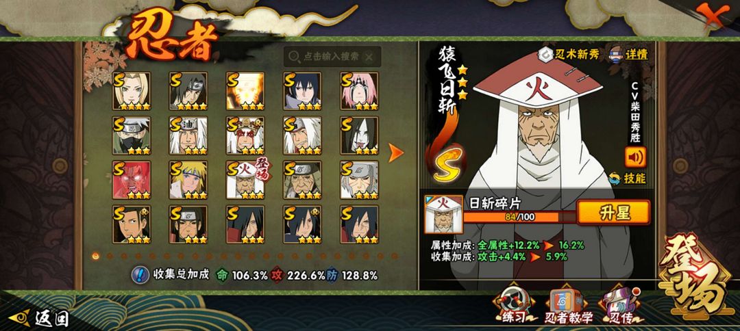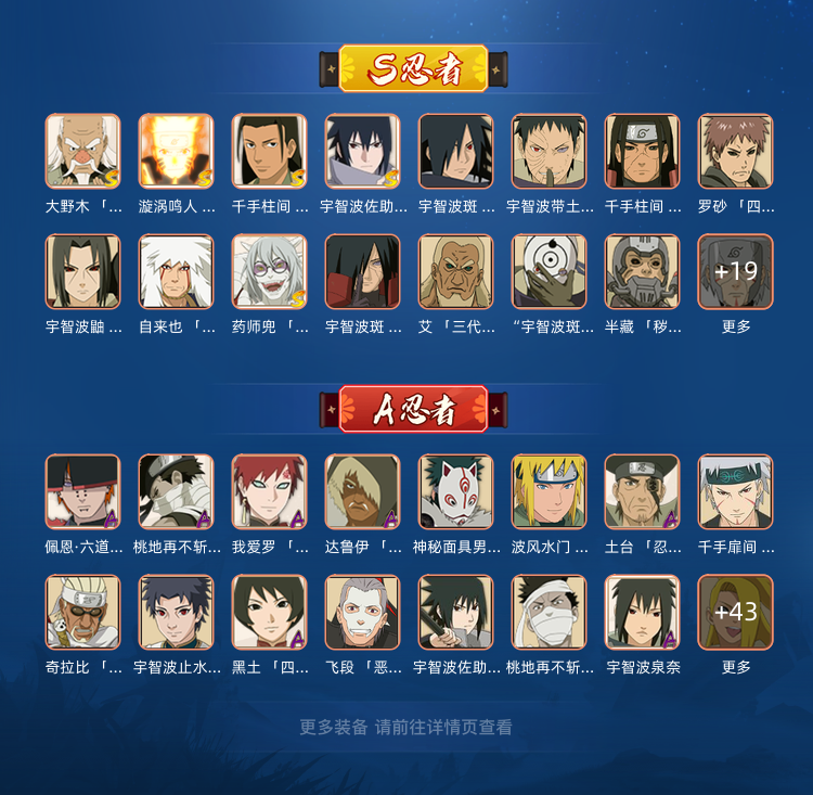 34s60A110B74c大部分s都有忍法帖高招A全有段位低随便虐杀有熊猫蛞蝓二尾段位低可以打