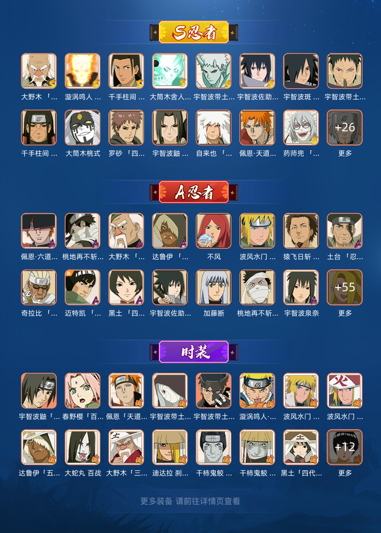 装备描述:全298直购A✨全328氪金忍者✨全可改技能时装✨侠隐佐助✨初代目风影烈斗✨自来也仙人模式✨小胡子✨三代目风影✨五影会谈斑✨天道超✨创立柱间✨罗沙四代目风影✨忍战带土✨须佐卡卡西✨秽土长门✨漂泊带土✨漂泊佩恩✨漂泊再不斩✨