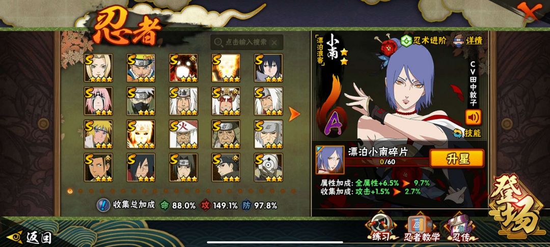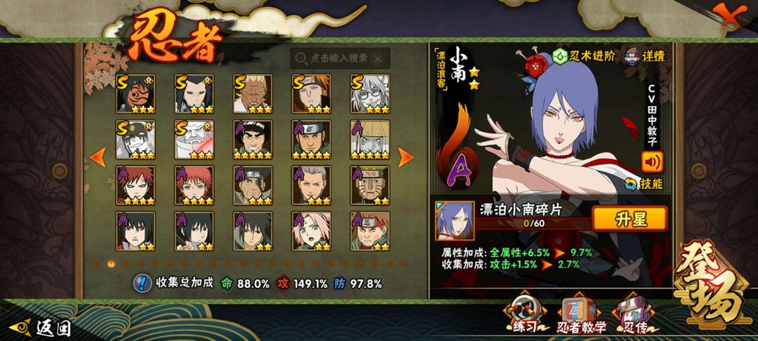 装备描述:须佐卡卡西,解斑,大筒木舍人 金式 漂泊小南 六尾鸣人