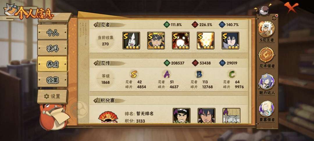 装备描述:十尾带土六尾鸣人罗砂特点多忍法帖密卷除了暴雪时空间和雷云都有