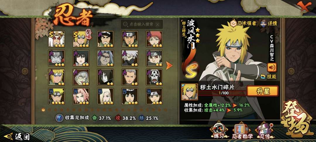 秽土水门+青水+晓蛇+鹰佐+鸡翅佐+止水神卡等,2S,13A,300多万战力,贵族6