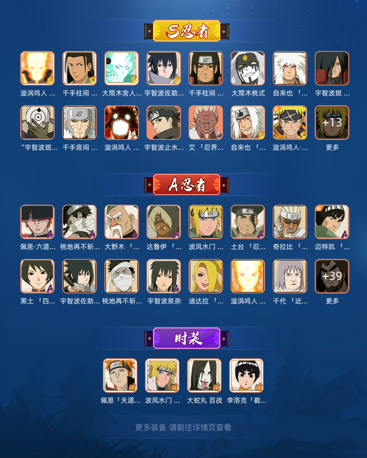 30s54a236忍黑绝、九喇嘛水门、六尾鸣人、鸡翅、巳月、五影斑、漂泊(带土、佩恩、再不斩、小南)