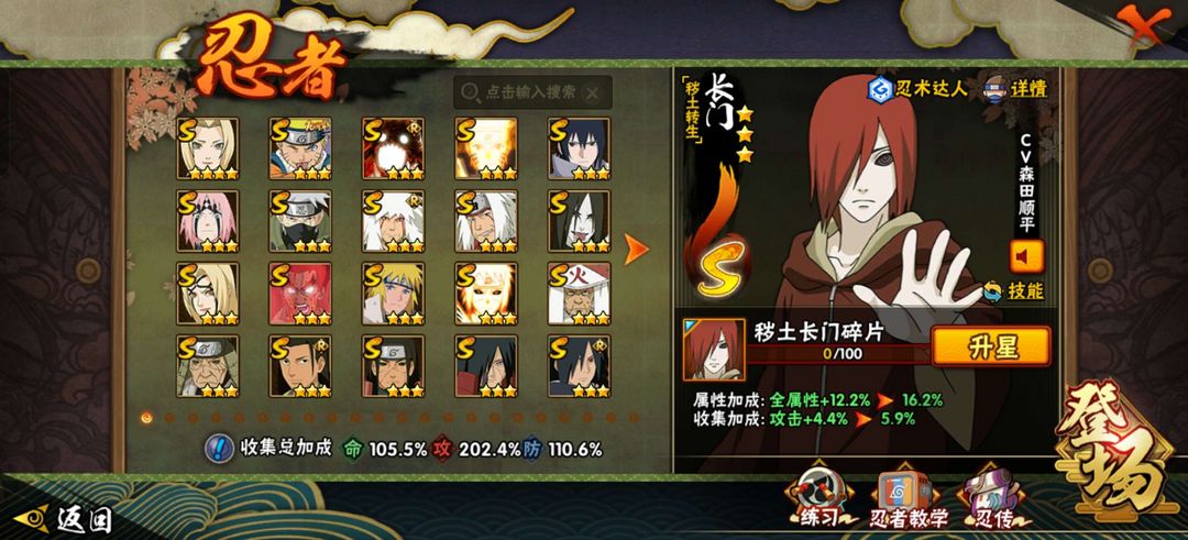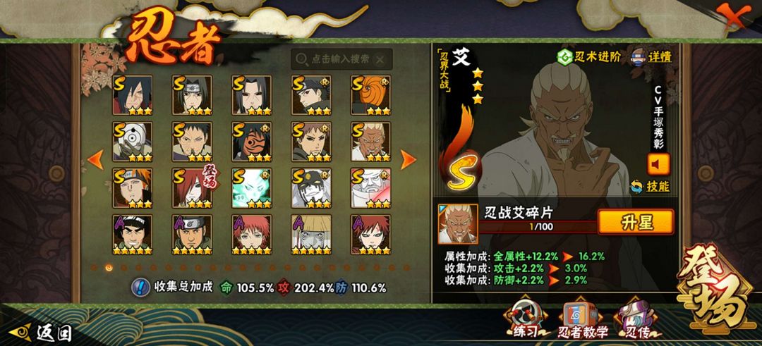 装备描述:35个s忍,50个a忍,漂泊带土,小南,佩恩 秽土鼬到金身水门的高招都有