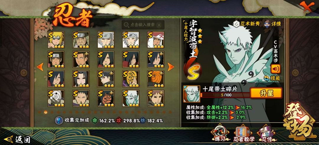 限制: 租号1次及以上 |装备描述:56s 3000w + 漂泊带土✨侠隐佐助✨十尾带土✨新水✨夏日黑土✨