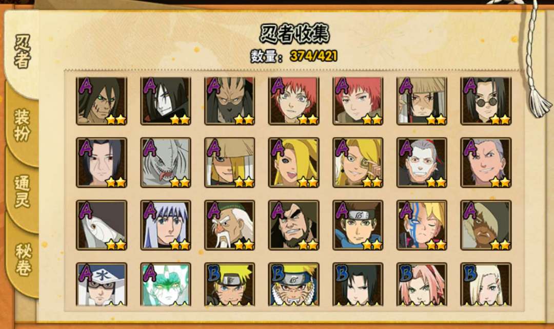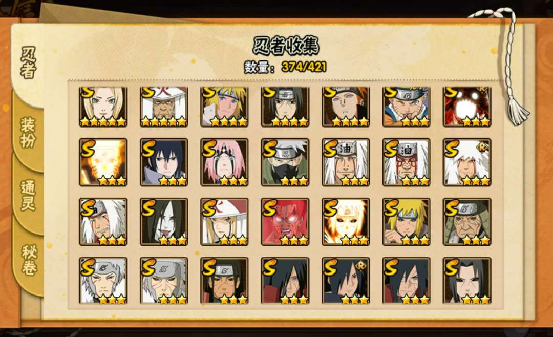 装备描述:328除了黄土鸣人全有 98通灵有螃蟹熊猫万蛇 密卷除了雷云全有