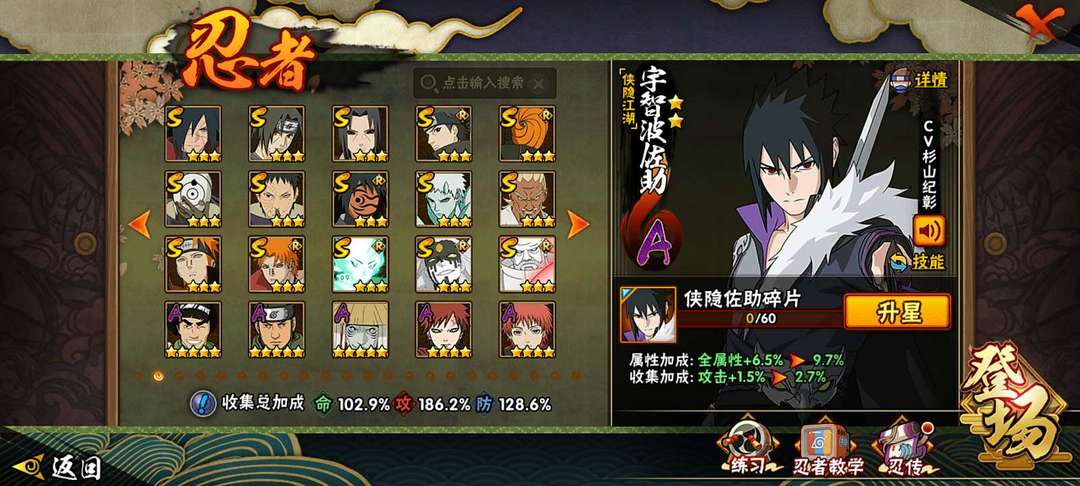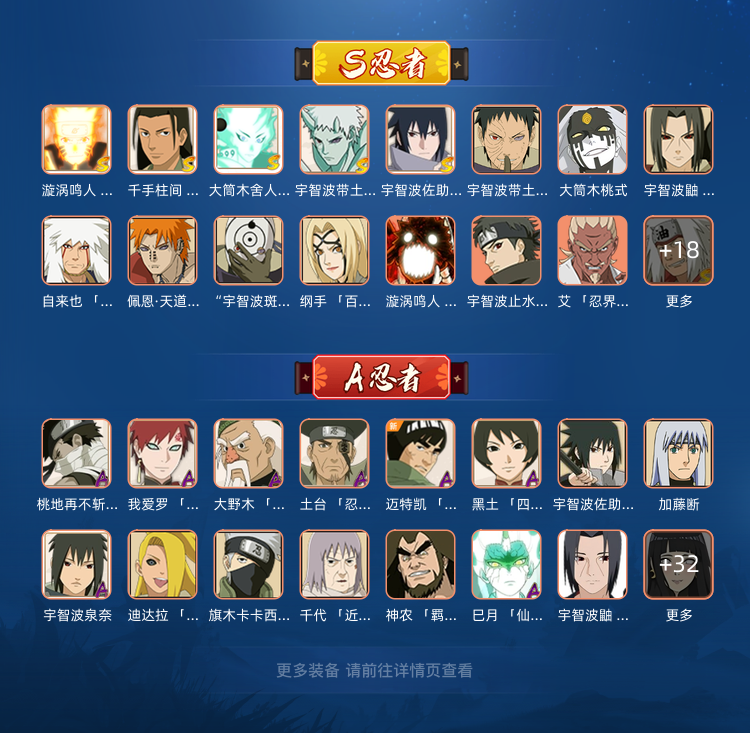 装备描述:六道带土❤️侠隐佐助❤️35S❤️48A❤️天道超❤️五影班❤️九喇嘛水门❤️六尾鸣人❤️大筒木舍人