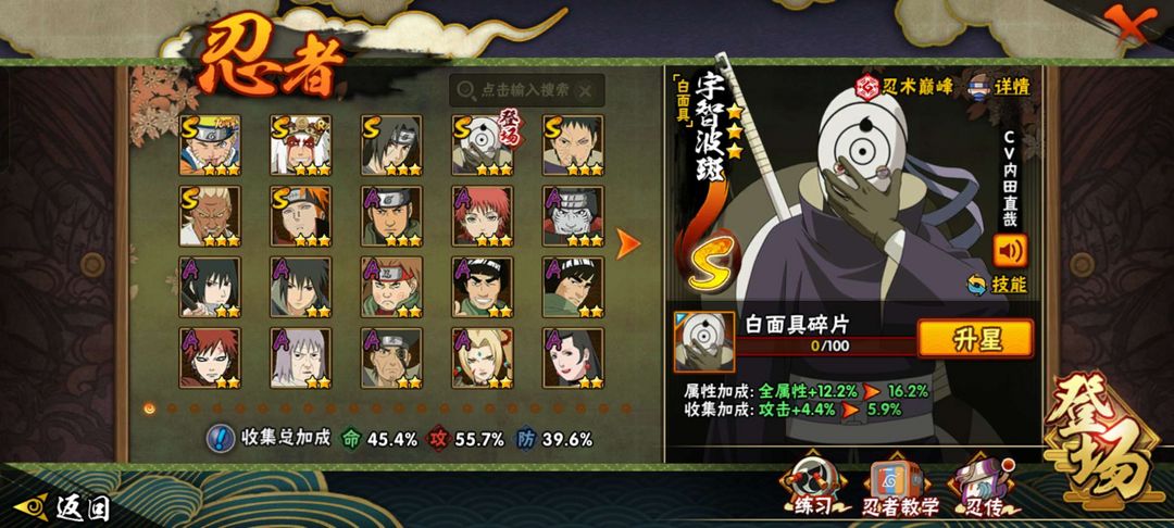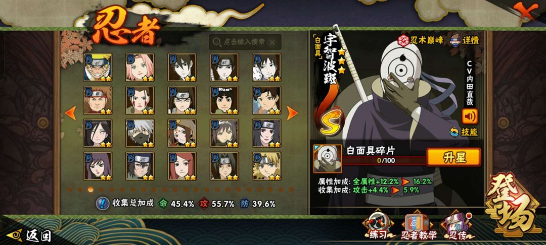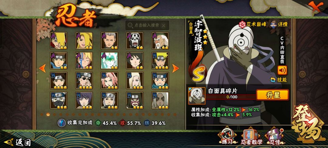 白面具,忍战带土,忍战四代雷影,骨架,桃博,仙人模式巳月都有