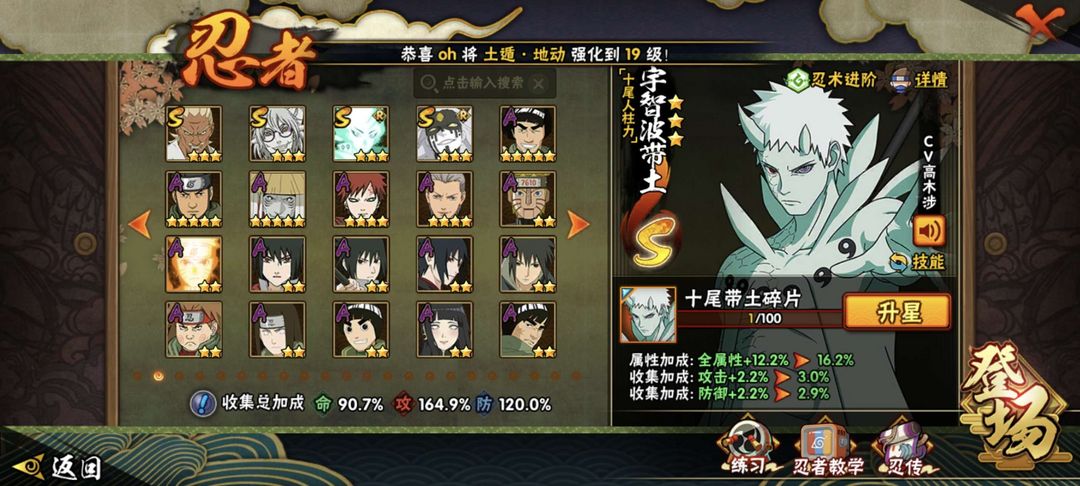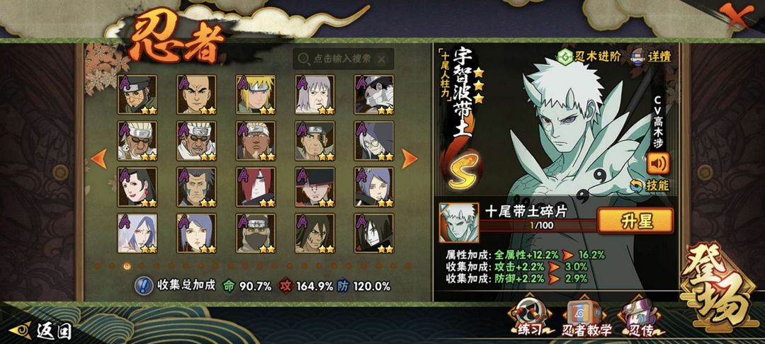 装备描述:24s 53a 共245忍,拥有十尾带土,五影斑,红夜带土,六尾鸣人等多个忍者