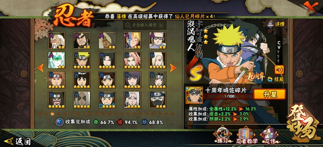装备描述:有漂泊带土五影会谈斑,暴怒八尾便宜可一直租8