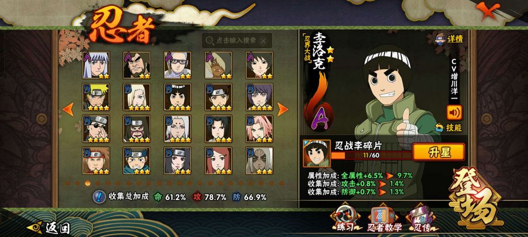 装备描述:百战佩恩 机械鸣人 神农 须佐佐助 鹰佐 黑土 长十郎 达鲁伊 忍战宁次 忍战李 暴怒带土 新春止水