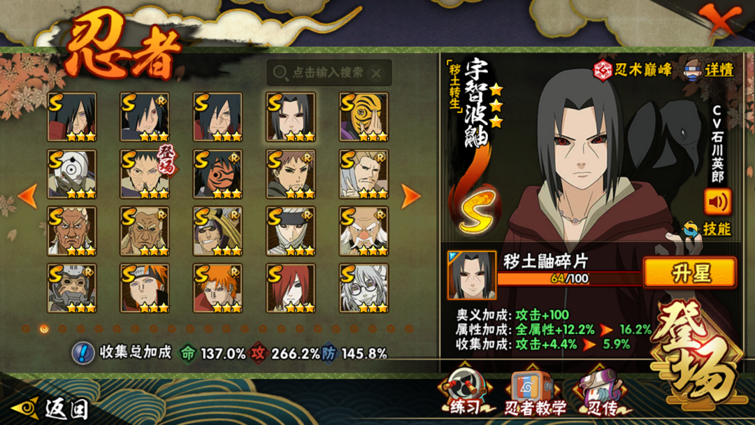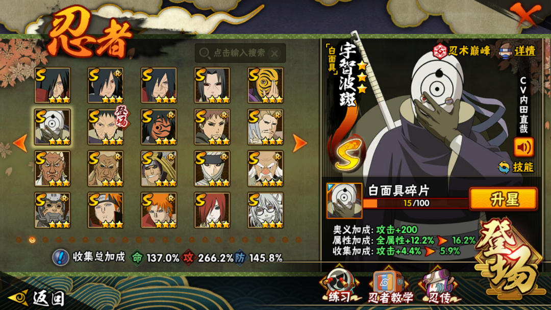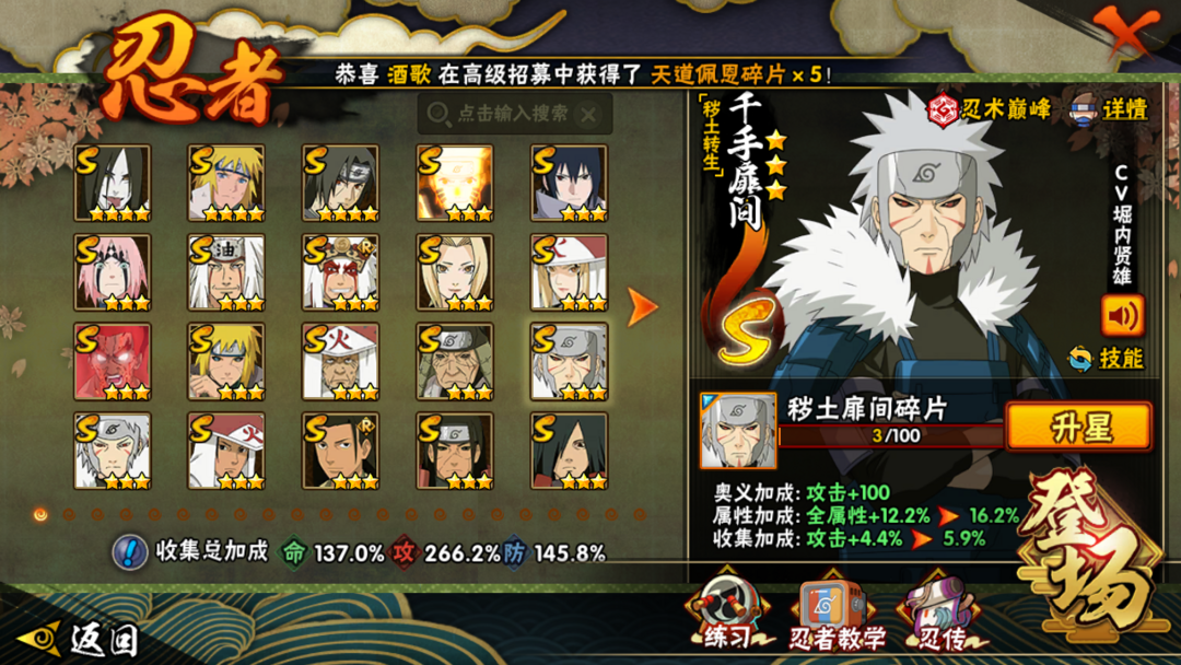 天道超❥大蛇丸❥千手柱间❥白面具❥永恒万花筒❥忍界大战❥半藏❥41S❥55A❥V14❥1460w战力