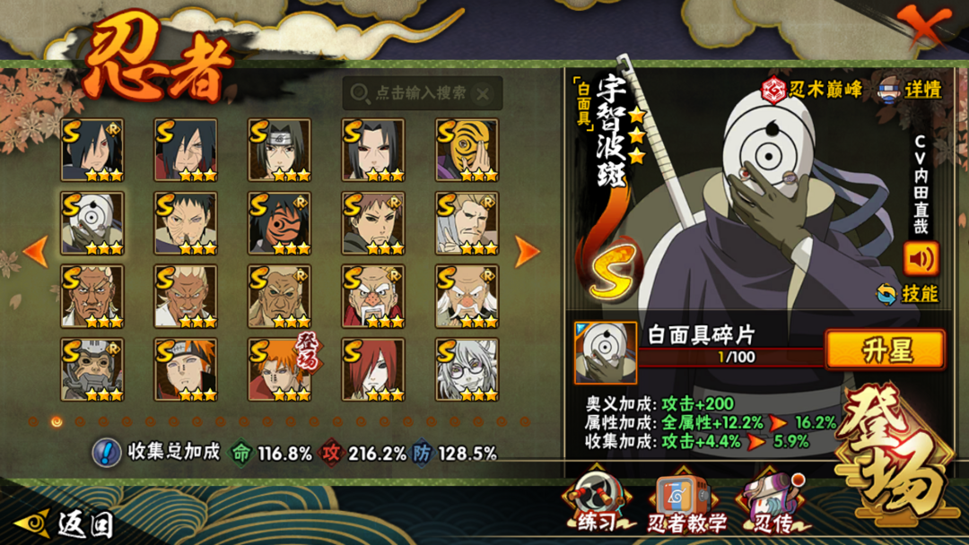 白面具✈自来也✈桃式✈秽土转生✈忍者带土✈大蛇丸✈我爱罗✈41S✈36A✈V11✈1888W战力