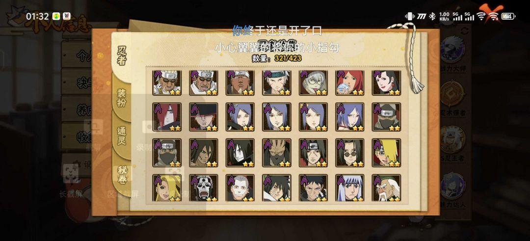 装备描述:欢迎来到超影租号小店,火影能带来快乐也你带来自闭。有梦想你也许就是火影忍者下个超影♥ 账号如标题。忍者看上图。不要动金币跟高招卷。 。账号可以段位赛。安卓区。也可带团本 喜欢的话点收藏。 祝你游戏愉快O∩_∩O