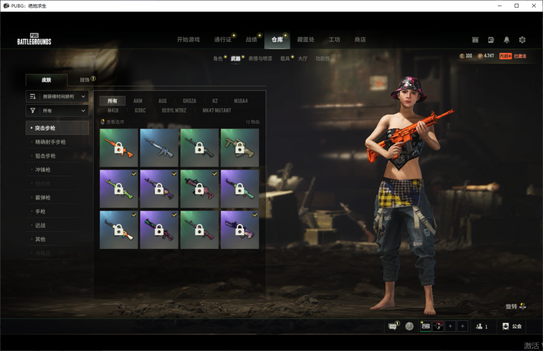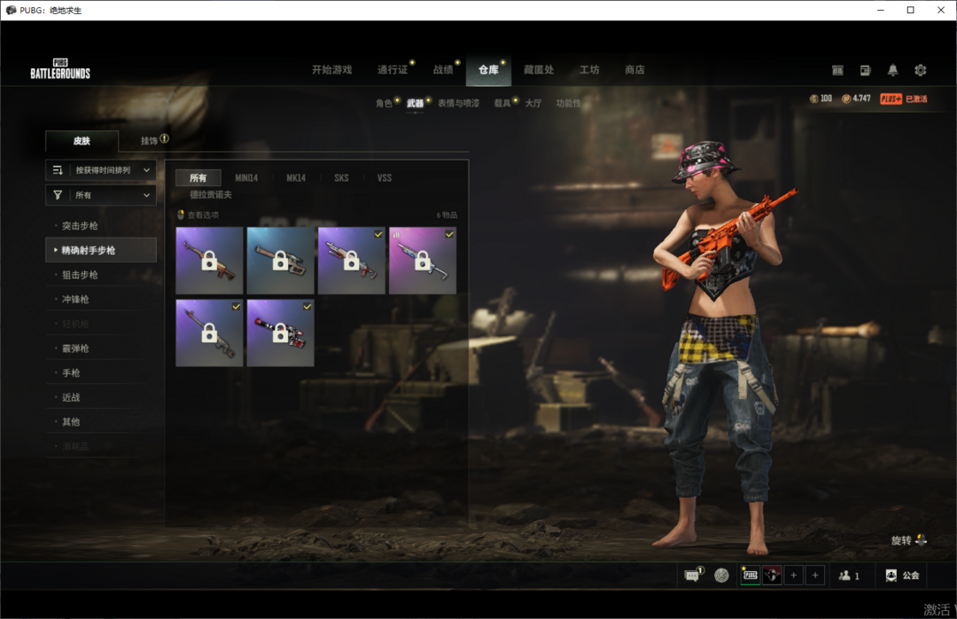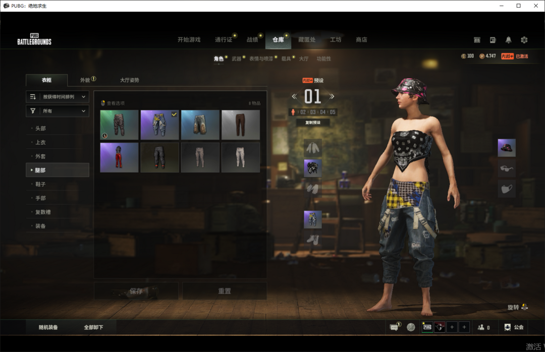 装备描述:可排位✨渔夫帽柏林觉醒长裤✨兰博基尼服饰套✨黄金齿轮M76PUBG信条马甲镀金AWM✨老兵队长套✨牛仔响尾蛇套✨年末问候洋裙