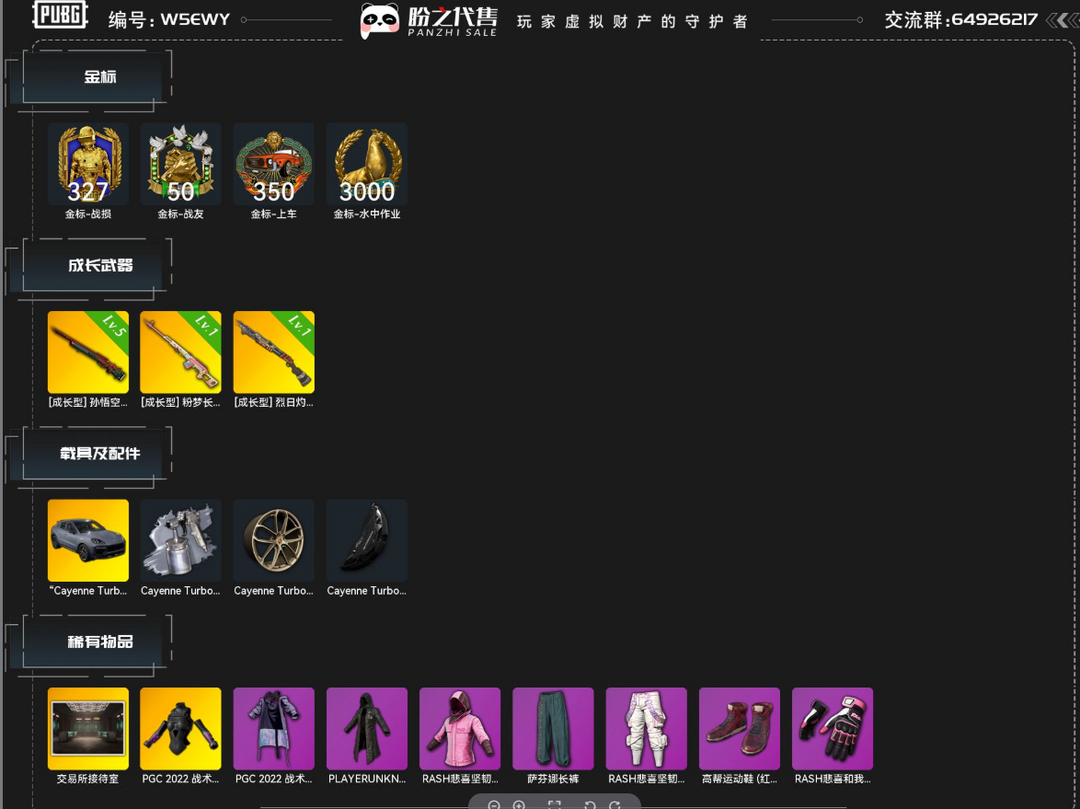 限制: 撤单率<40%才可租用此帐号装备描述:(使用外挂 以及各种压枪软件,连续和外挂组队,击杀队友,滥用游戏BUG)如果导致封号报警处【本号是平台反外挂系统专用号】绝对开不了挂的,最后提醒各位租客切勿开挂 一经检测 立马掉线 扣除租金【你的电脑你的手机支付方式将你本人永拉黑】