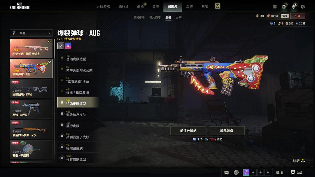 4级爆裂弹球AUG|粉梦长眠德拉贡南瓜锅|多色车皮|PNC套装|发光手臂|黄金首尔裤雪山大厅绿东
