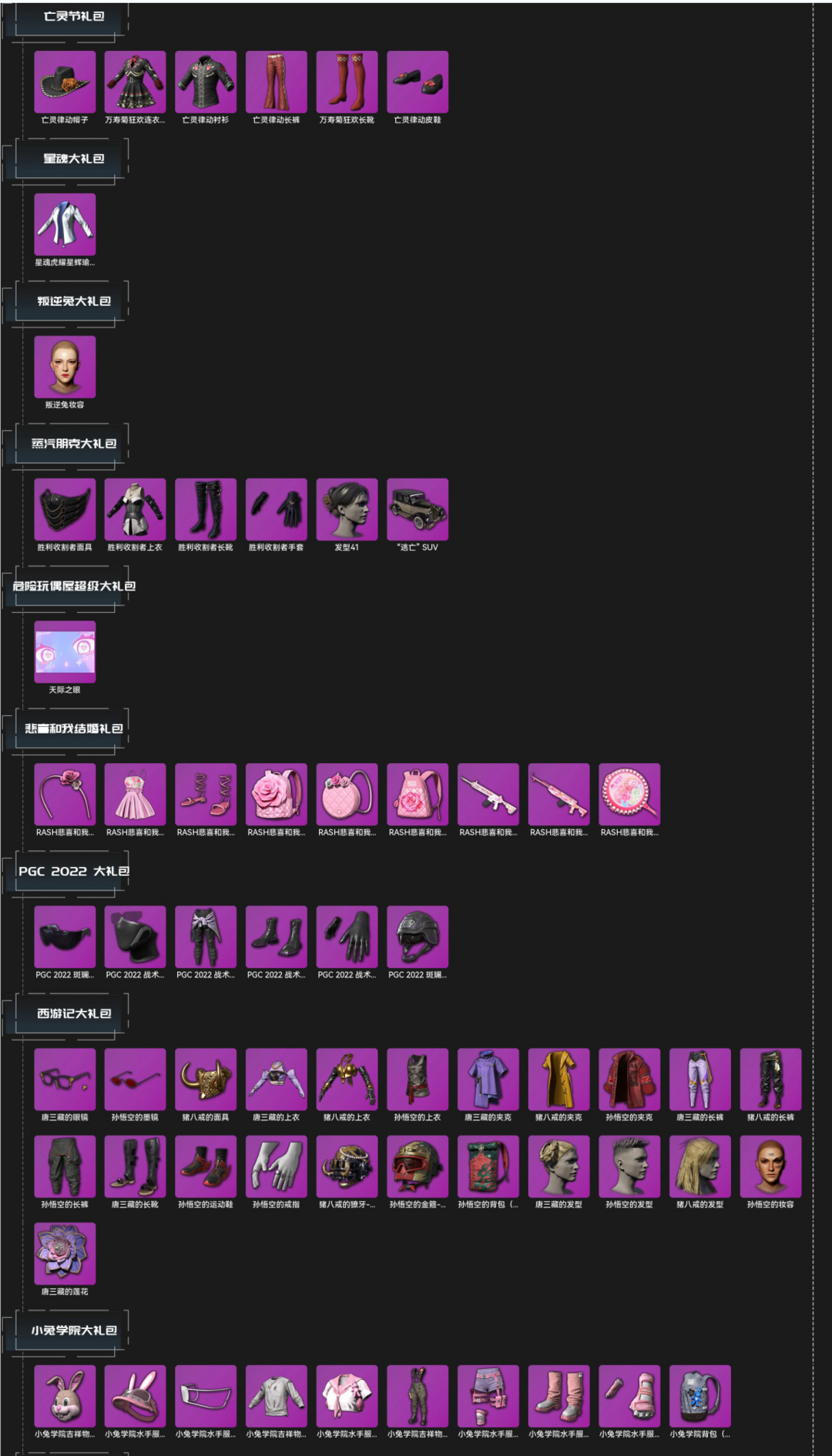 6神2满⑩AUG⑩孙悟空m24②三藏锅⑥MK12小丑女黑鬼金面滑雪镜尼尔拉风龙发光臂渔夫帽保时捷跑车