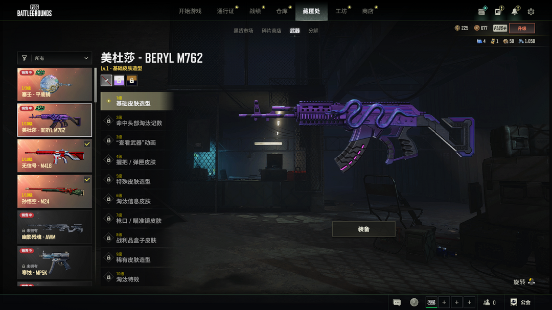 美杜莎M762√无信号M416√孙悟空M24√塞壬平底锅√悲喜套柏林鞋√猫咪挠摩托√王者风衣√红面巾
