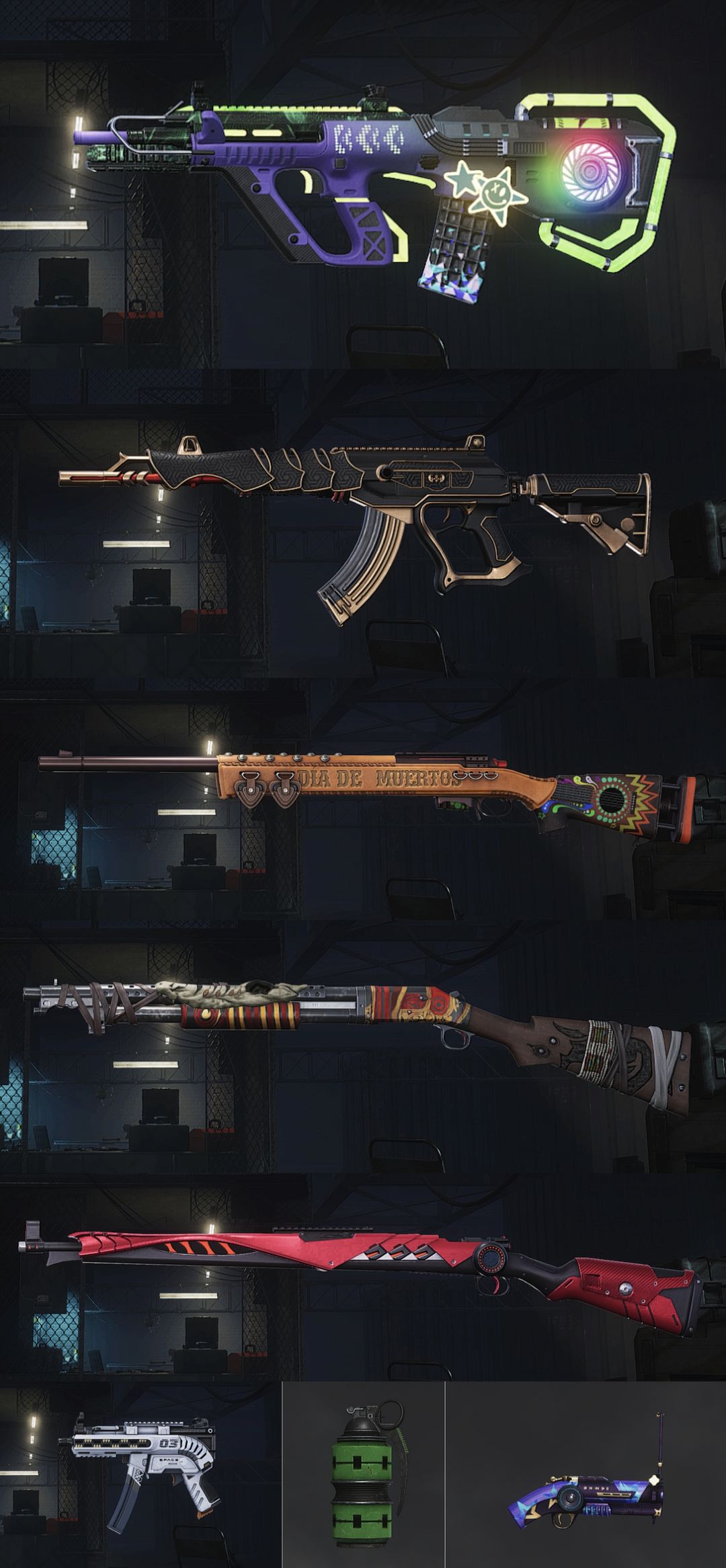 装备描述:【八神器】保时捷卡宴/满级霓虹之梦AUG/最后的小夜曲M24/无重力MP5K/妖魔之触ACE32/烈日灼烧S1897/午夜惊魂-KAR98K/紫色烟枪/翡翠色烟雾弹/双色奢华版阿斯顿马丁跑车/黑头/滑雪镜/金面/滑雪帽/马丁渔夫帽/悲喜大礼包/白熊套装/宇航兔大礼包/胜利之舞145