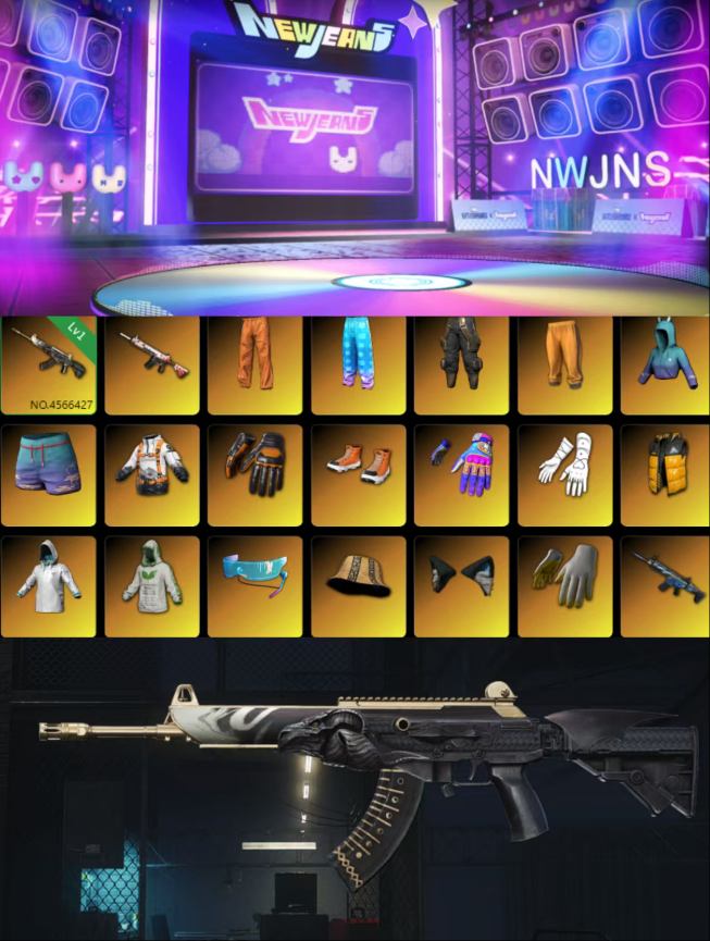 装备描述:炫酷女团大厅【四神器-妖魔ACE32/夜曲M24魔咒之力MK12-恶魔ACE】渔夫帽/黄东南亚/蟒蛇花园夹克/小叮当裤/主播手套/拉风龙裤/2022斑斓危机套装/雪片套装/银河少女套装/萨迪亚战斗服套装/枫叶M416/霓虹之星-SCARL/宝藏AKM/山花M762