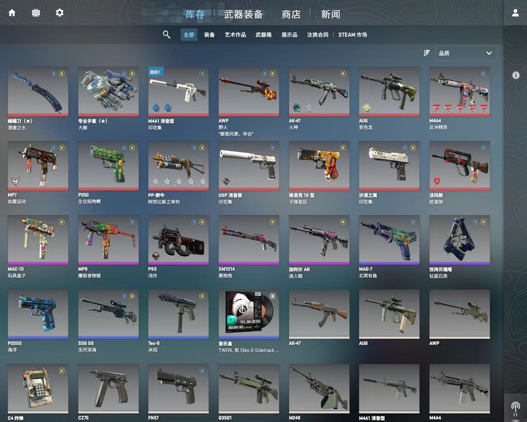 完美C+⚡蝴蝶刀澄澈之水⚡大腕手套⚡印花集⚡awp野火⚡主站全齐