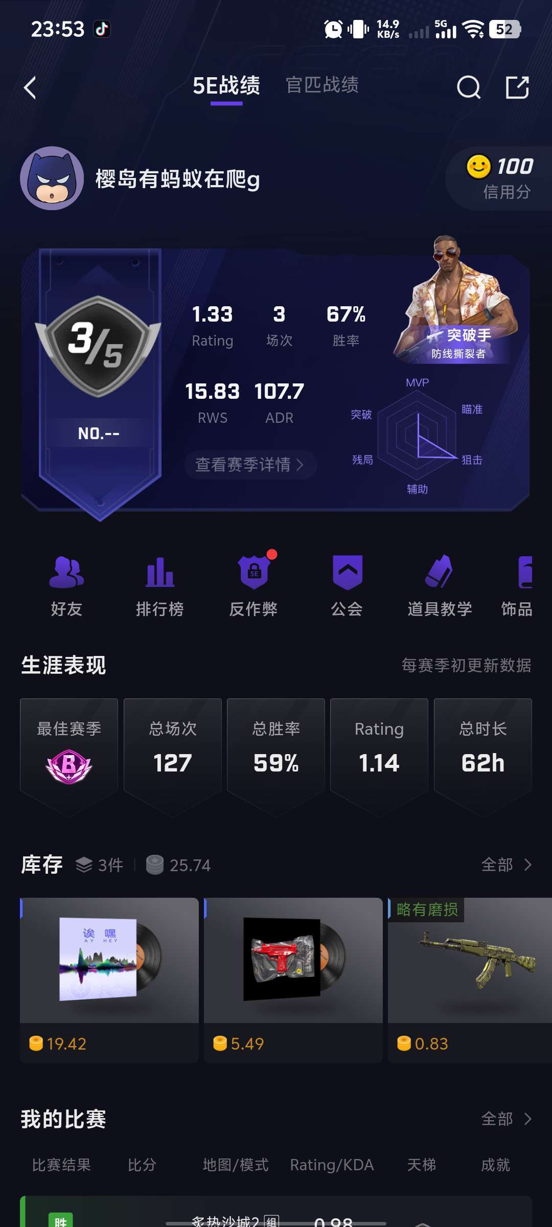5e完美绿,有ak,手枪皮肤,和唉嘿盒,可打排位。