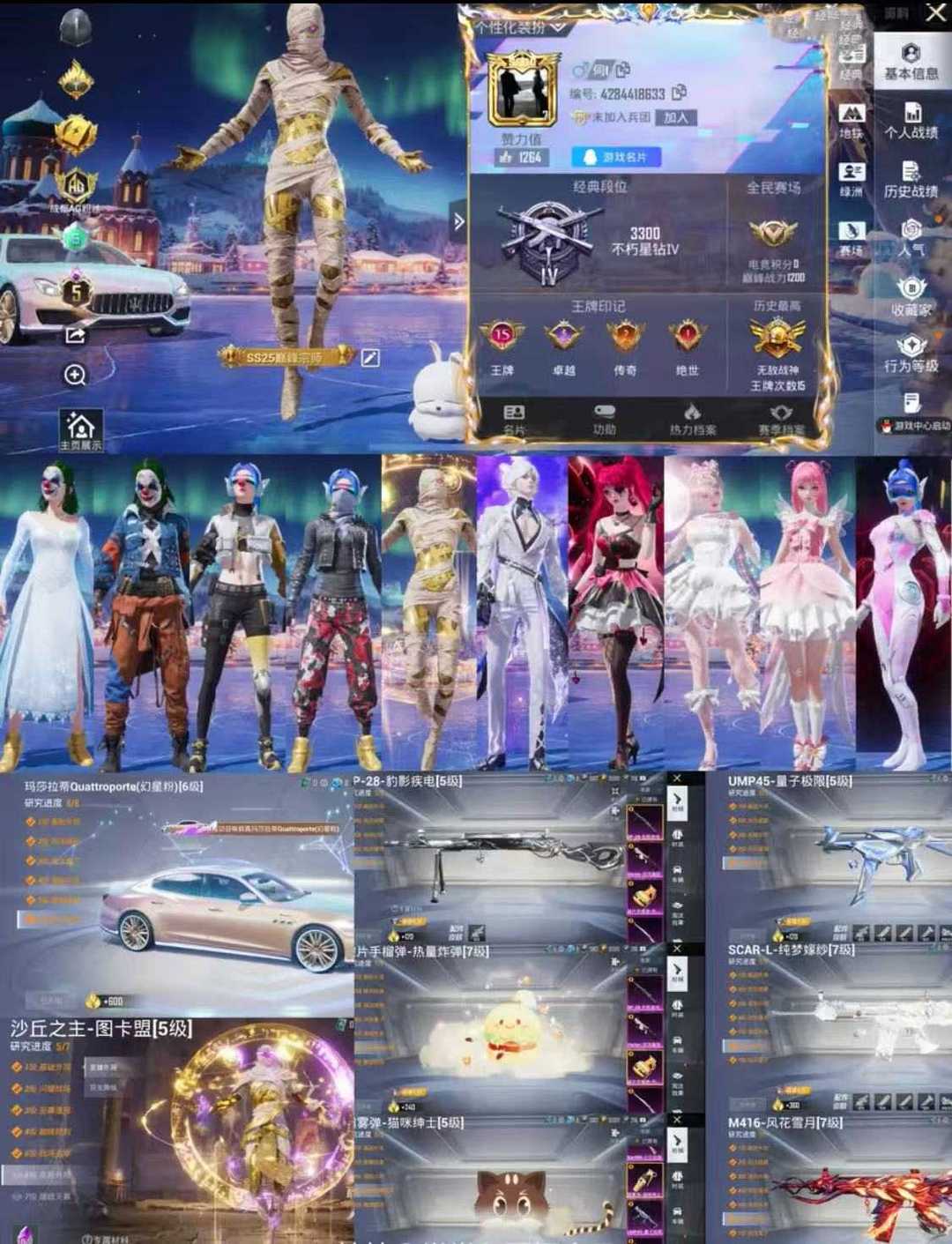 伪单字【伺l】五级图卡盟*满级玛莎*战神框/雪国*小丑*都市*赤蝎*金鞋*放克*追光服*新101*满