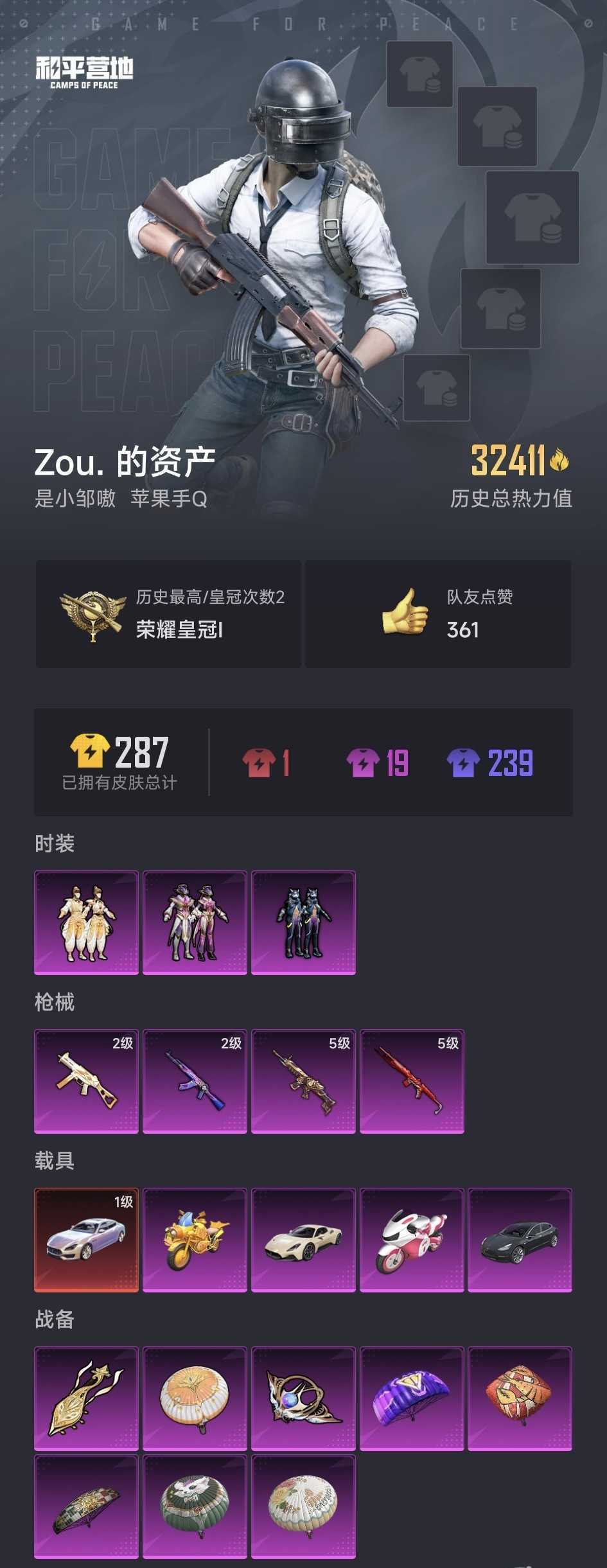 装备描述:1红装玛莎拉蒂Qu❤️特斯拉model5载具❤️19粉装无敌号