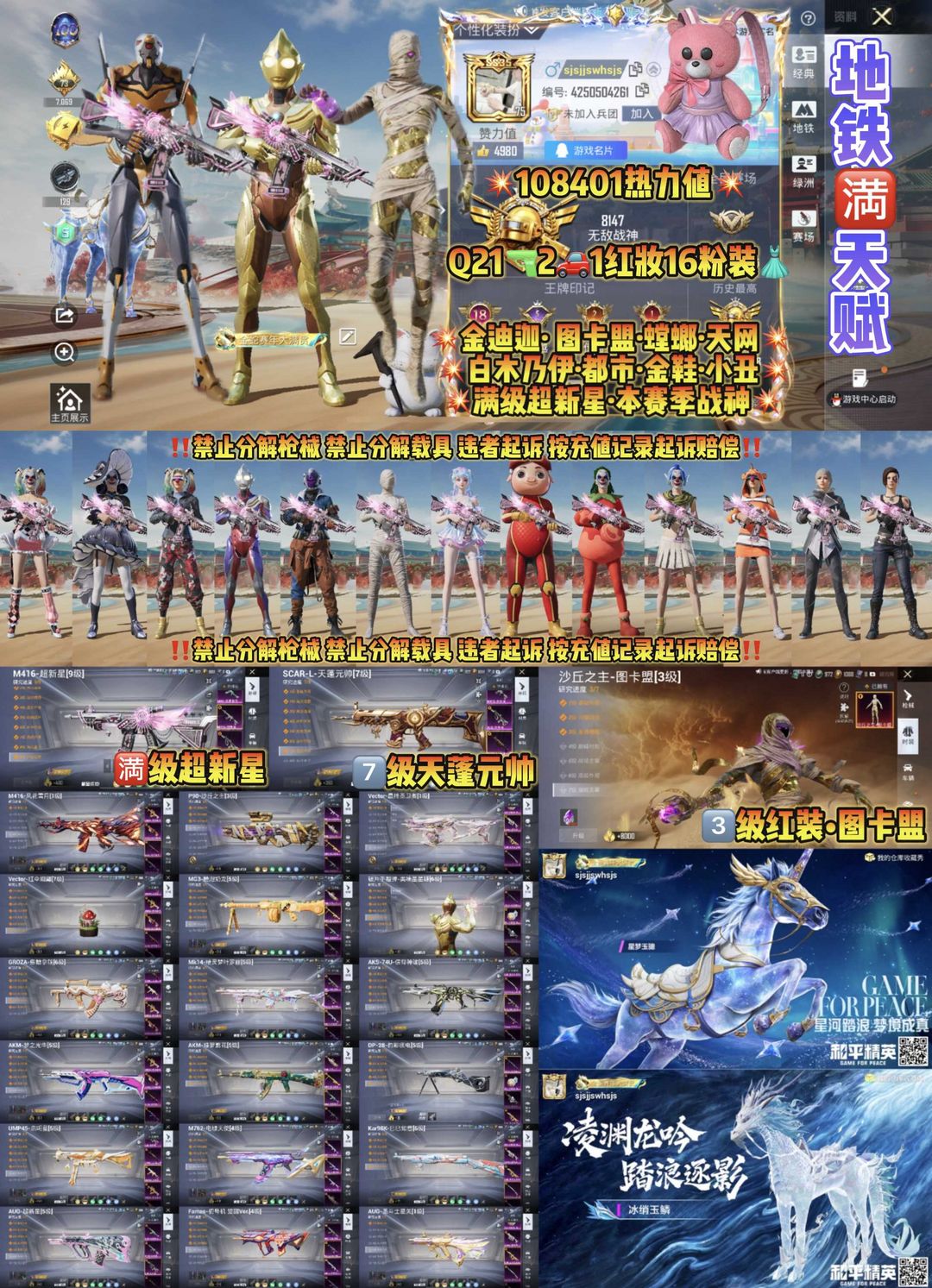 包天便宜✨满级M4超新星上赛季战神带入场特效图卡盟金迪迦天网白木乃伊螳螂粉茄放客极限满素材小丑