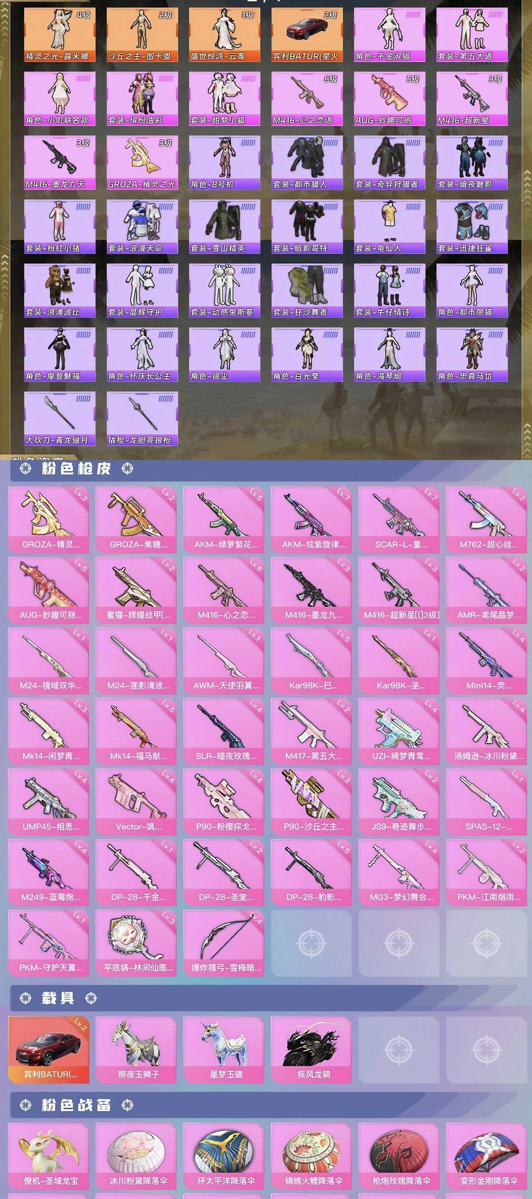 3神装➕36粉装➕39粉枪➕4载具❤️极品素材➕男神身法号❤️