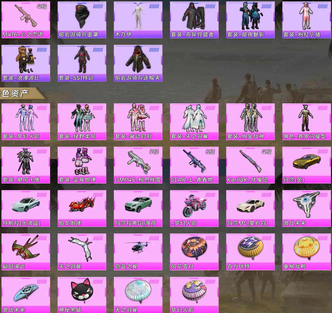 限制: 租号10次及以上 | 撤单率<70%才可租用此帐号装备描述:金绿白玛莎◆木乃伊◆梦幻火箭101◆焰龙咆哮◆蓝特斯拉◆绚金战神◆奇异狩猎者◆绿野柔风