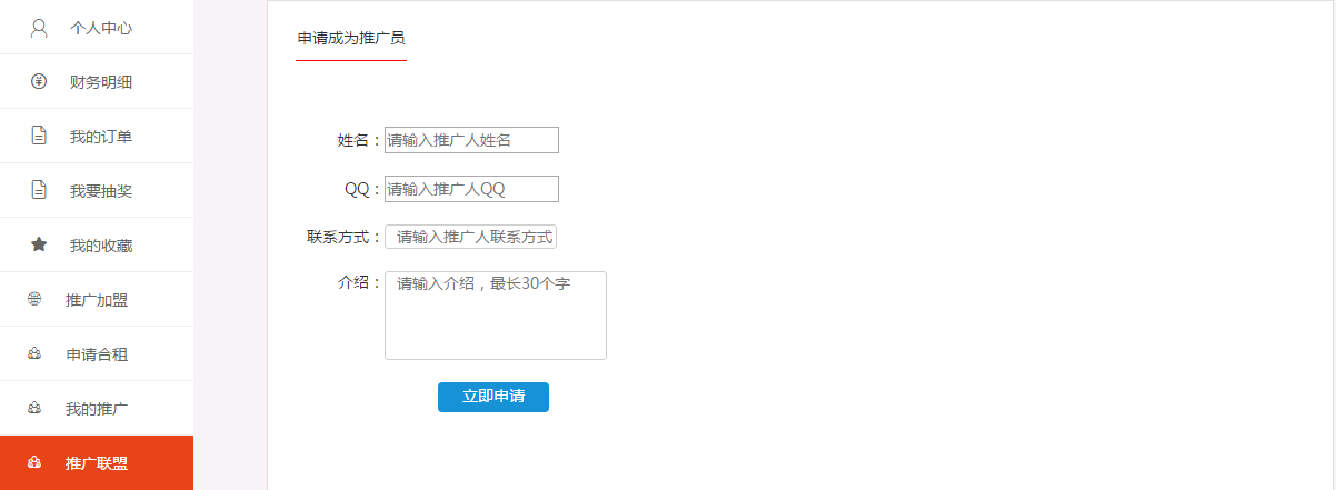 2、点击电脑版网页右侧“个人中心”-“推广联盟” (如下图)